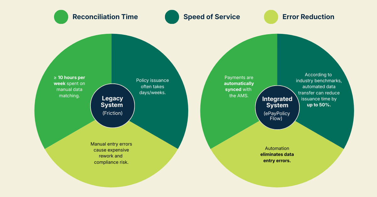 With ePayPolicy, money and data move together, closing the gaps that slow capital flow and risk errors.