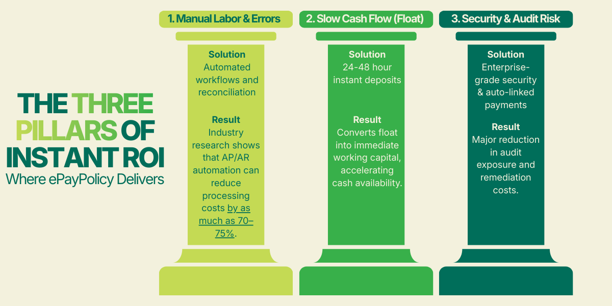 Understanding the ecosystem is just the tip of the iceberg. ePayPolicy is how you confidently navigate it. By unifying your digital payment flow, we help you capture every dollar of margin and eliminate the manual stalls in your team’s productivity.